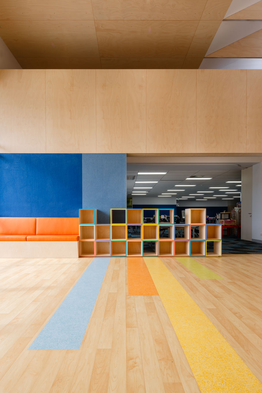 The entry location has been considered to take advantage of the existing pedestrian walkway and paths to playground areas, as well as drawing the entry into a zone which is co-located with the outdoor learning area courtyard for the TIEC.